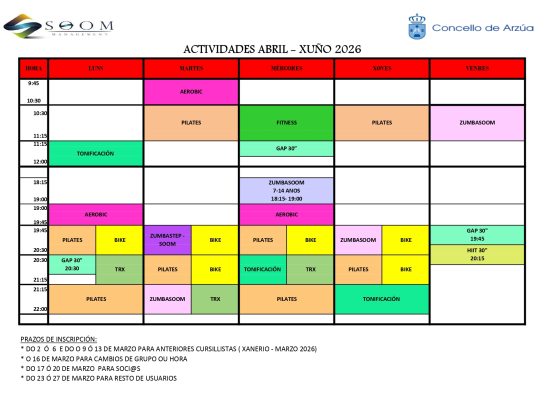 INSCRIPCIONS ACTIVIDADES XANEIRO - MARZO 2026