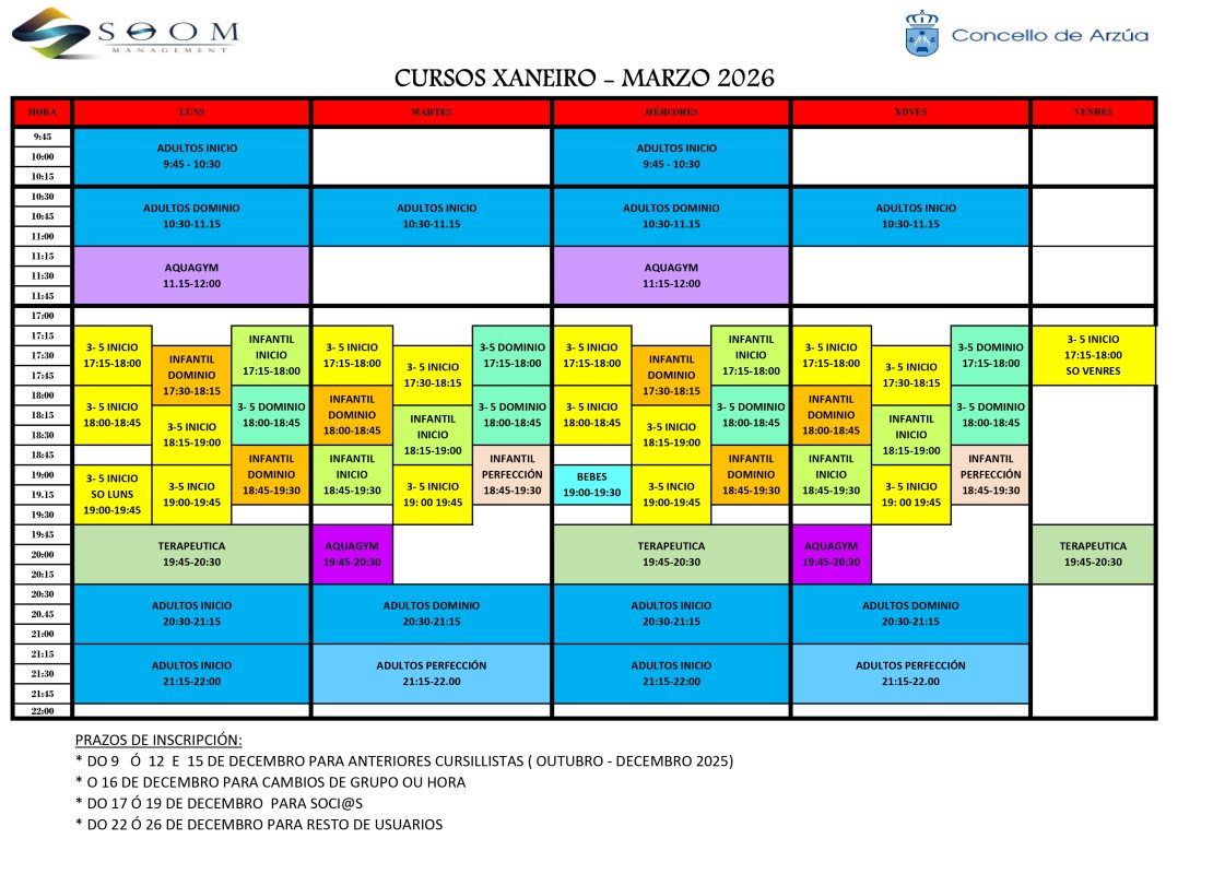 INSCRIPCIONS CURSOS XANEIRO - MARZO 2026