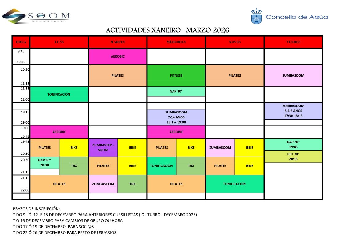 INSCRIPCIONS ACTIVIDADES XANEIRO - MARZO 2026