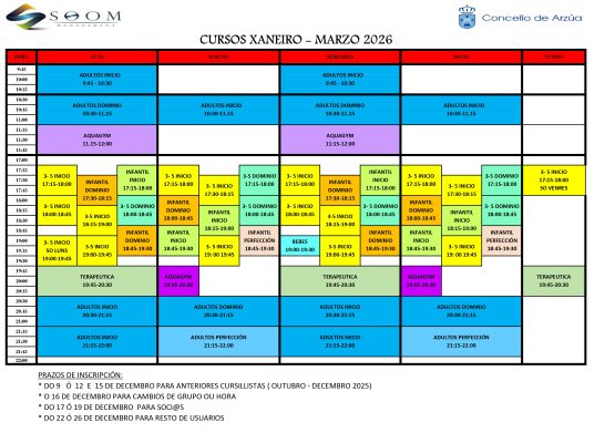 Ademáis aproveitamos para informar das datas de inicio de cursos e actividades:
